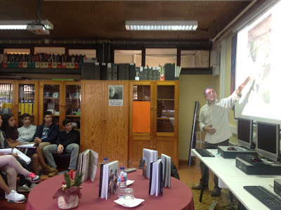 No Encerramento da Feira do Livro, tivemos hoje na nossa Biblioteca o Escritor/Viajante Gonçalo Cadilhe. Foi uma sessão muito animada em que o autor soube prender a atenção dos alunos com as suas histórias e as imagens das suas viagens pelos quatro cantos do mundo. Gonçalo Cadilhe explicou aos presentes o que motiva as suas expedições, como organiza as suas viagens e como valoriza os pequenos pormenores das vivências de cada uma delas. Chamou a atenção para a possibilidade de se viajar com poucos recursos, em sítios fantásticos contactando povos e culturas de enorme riqueza e diversidade. Uma manhã em que todos viajamos de Veneza ao Taiti, da Namíbia à Ilha de Páscoa, da Indonésia ao México. Momentos únicos que todos souberam aproveitar!
